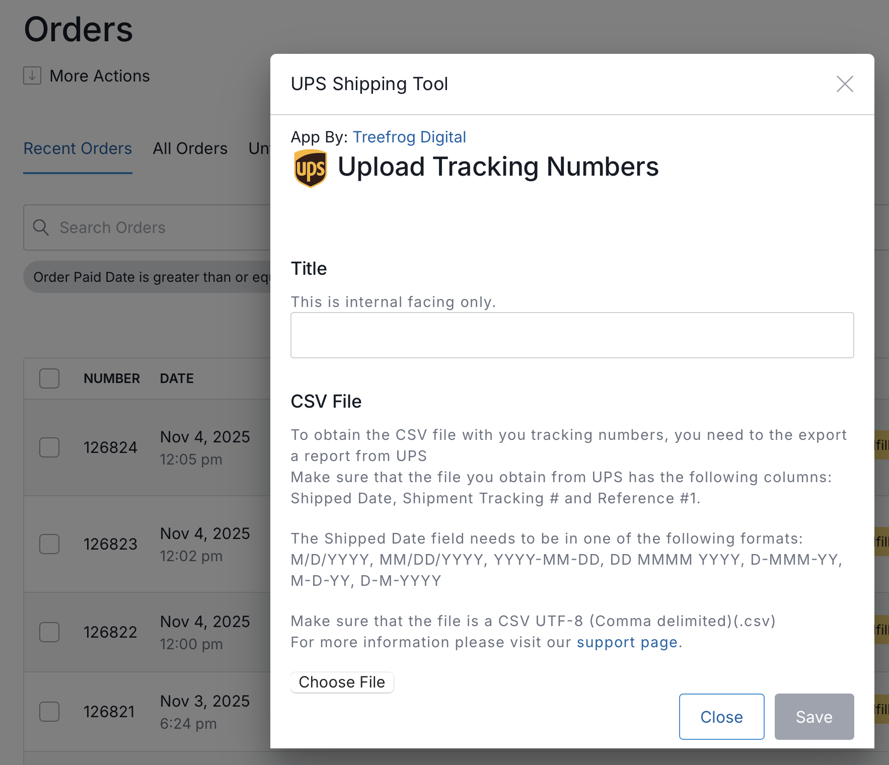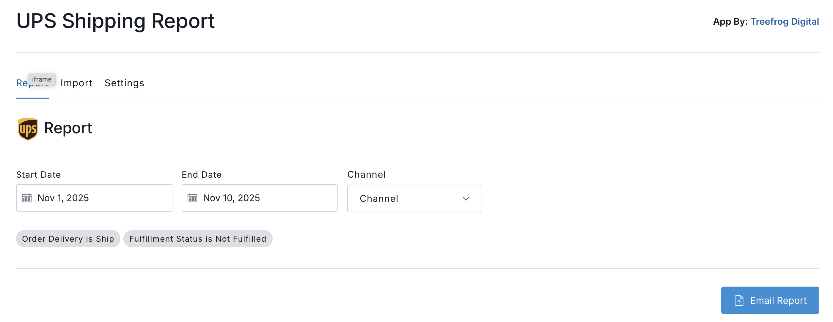 The UPS Shipping Tool integration app for Commerce7 is owned and built by a 3rd party developer (Treefrog Digital). For questions regarding custom reports, setup, or support, please contact us at hello@treefrogdigital.com.