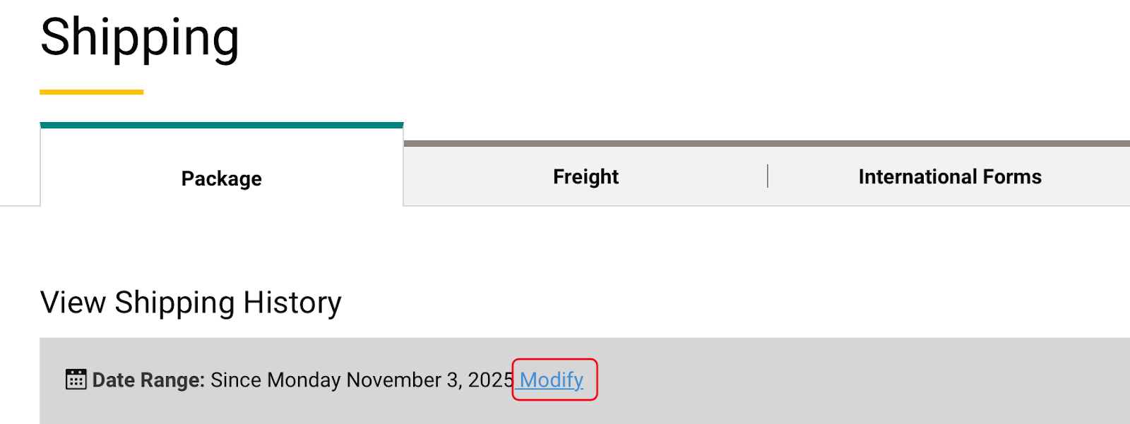 - To export or request a report, specify a date range for the shipping orders you want to upload to UPS: