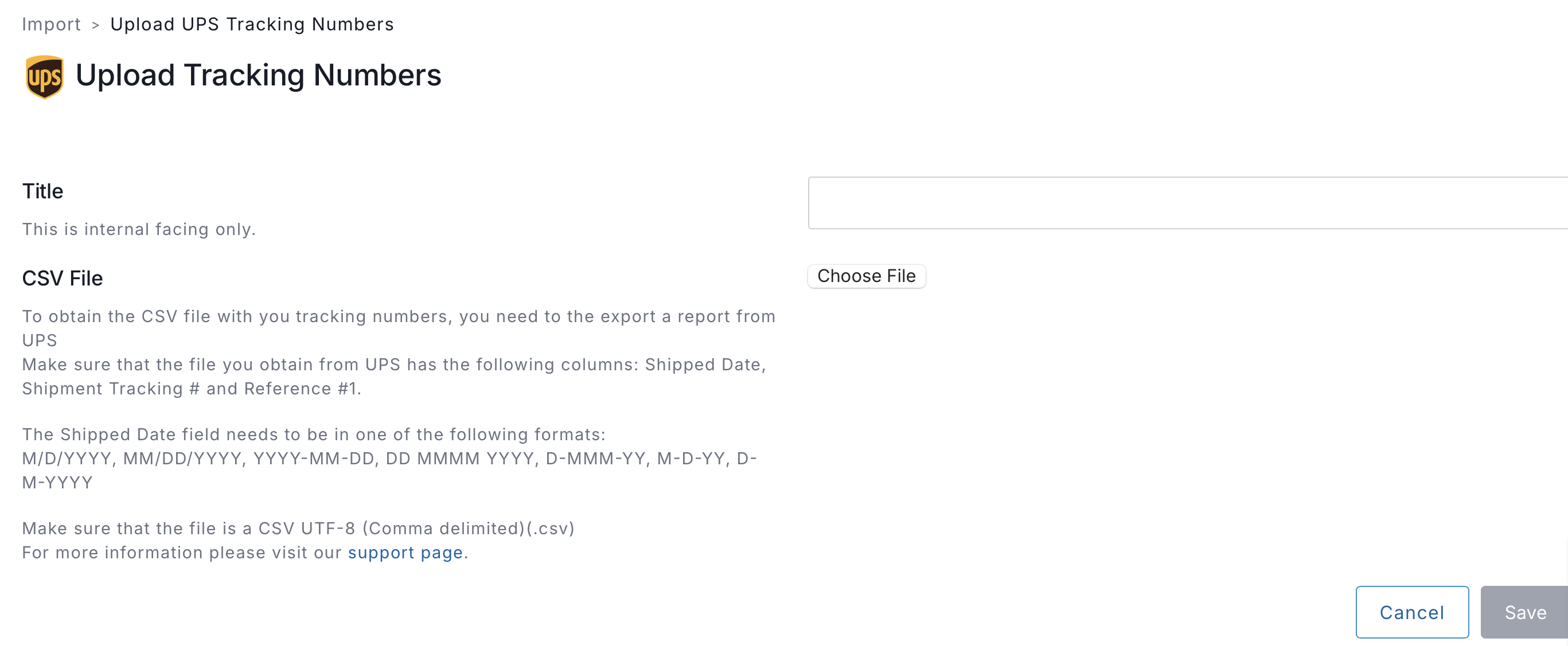 - Make sure the file contains the following columns: Shipped Date, Shipment Tracking #, and Reference #1
