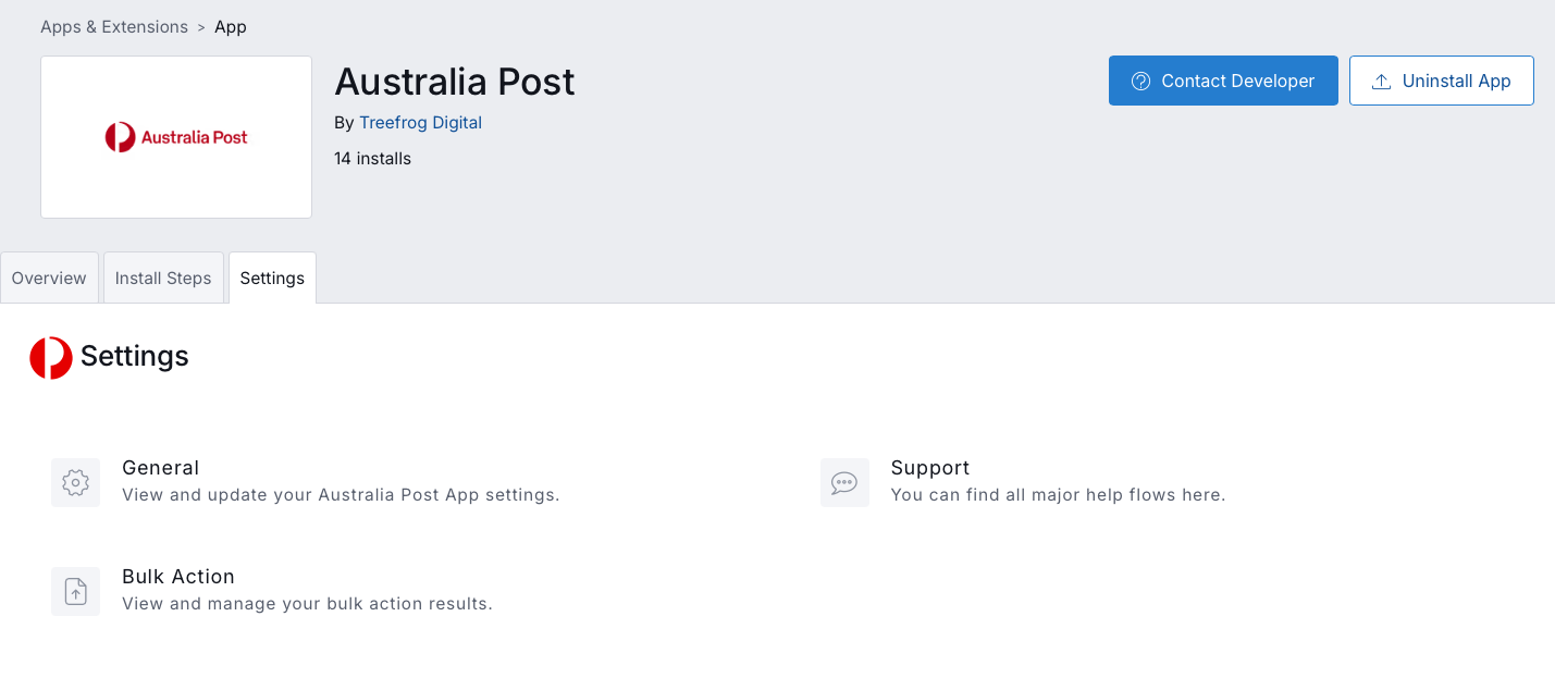 - Search for the Australia Post by Treefrog Digital, click on the app, and then click Install App.