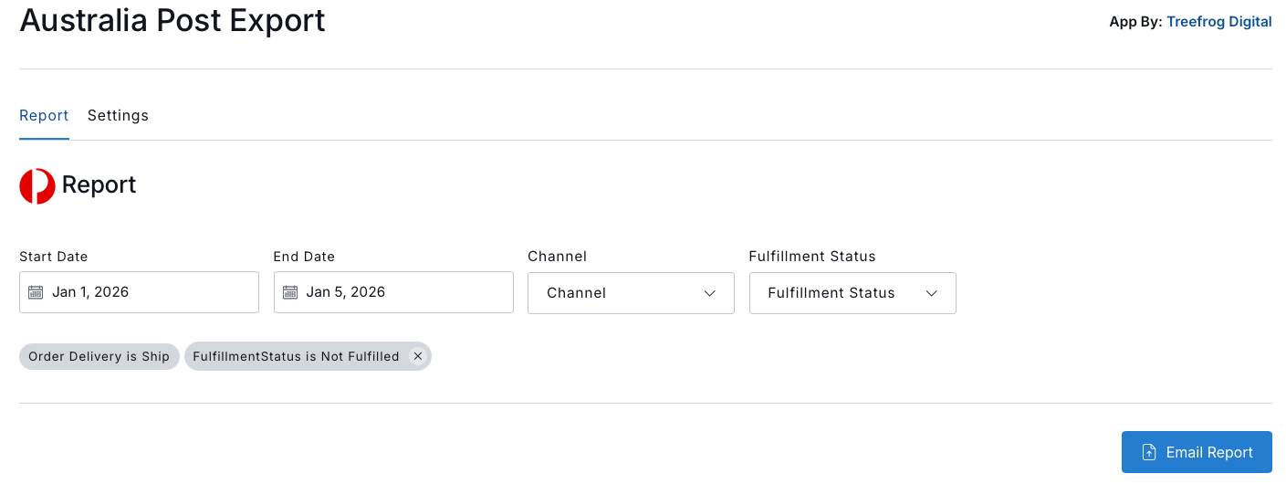 The Australia Post integration app for Commerce7 is owned and built by a 3rd party developer (Treefrog Digital). For questions regarding orders reports, setup, or support, please contact us at support@treefrogdigital.com.