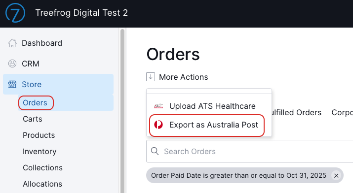 - Click More Actions, then select Export as Australia Post.