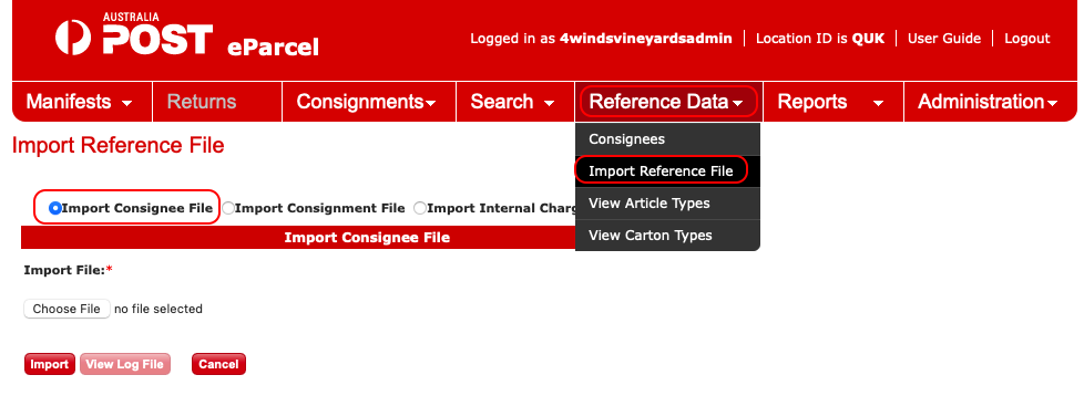 - Select Import Consignment File
